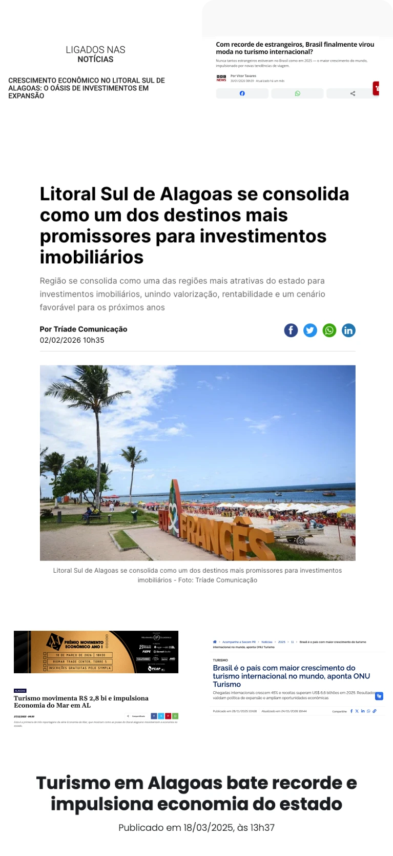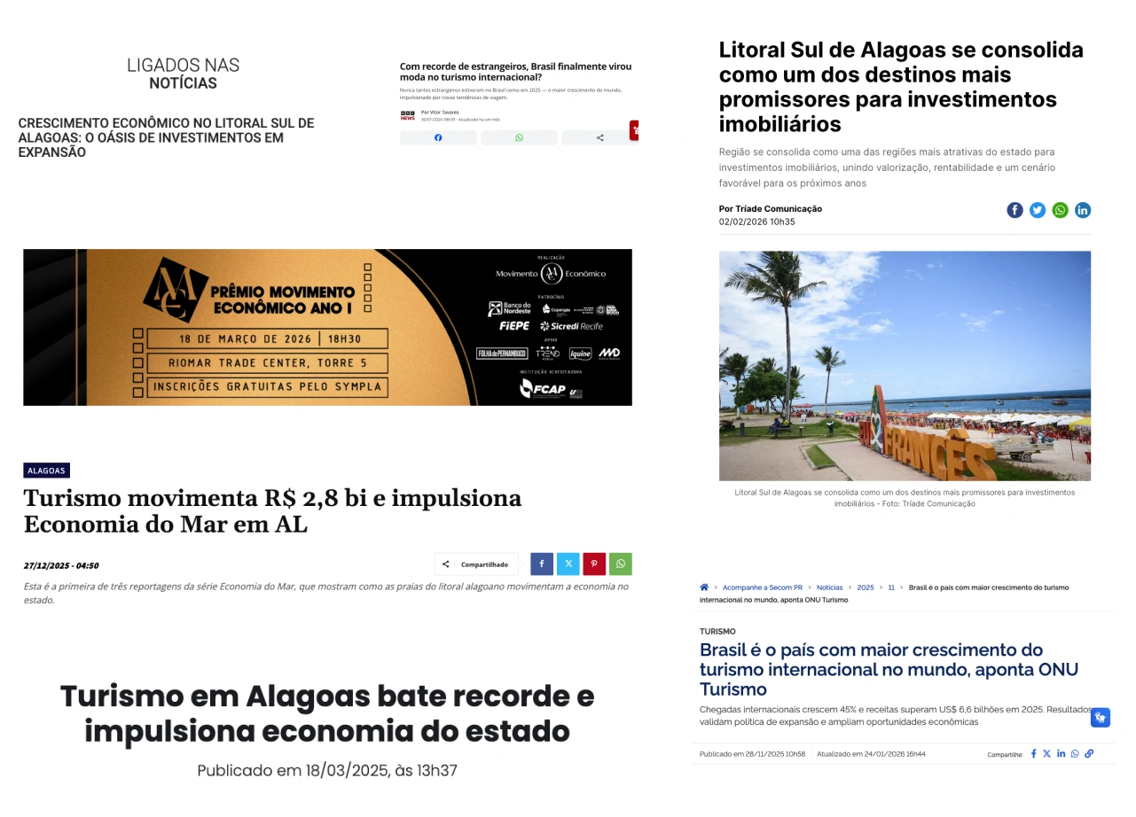 Em Alagoas, esse movimento já aparece nos números: crescimento do turismo, novos empreendimentos surgindo e aumento da valorização imobiliária em regiões estratégicas do litoral.